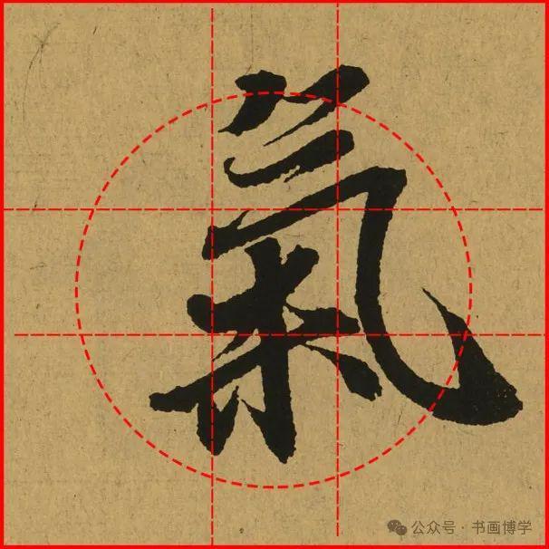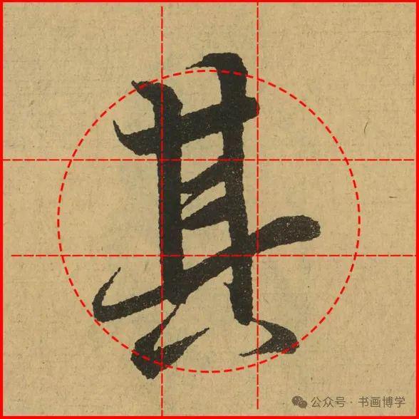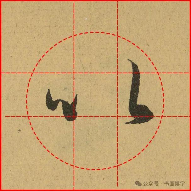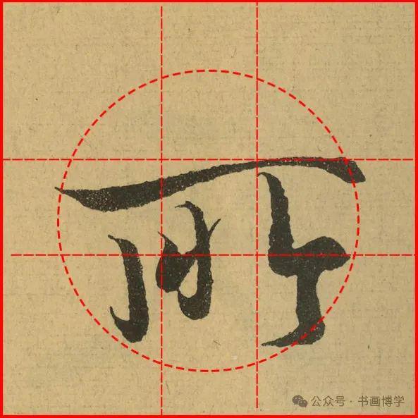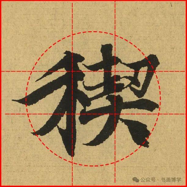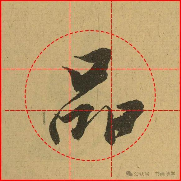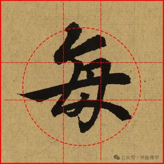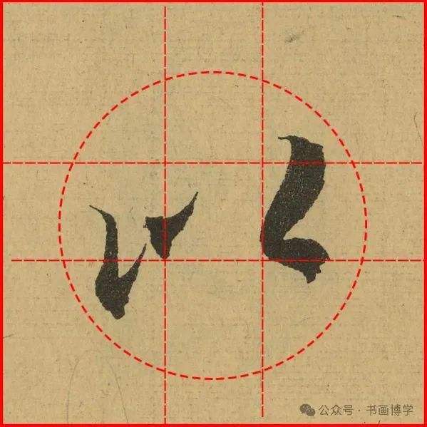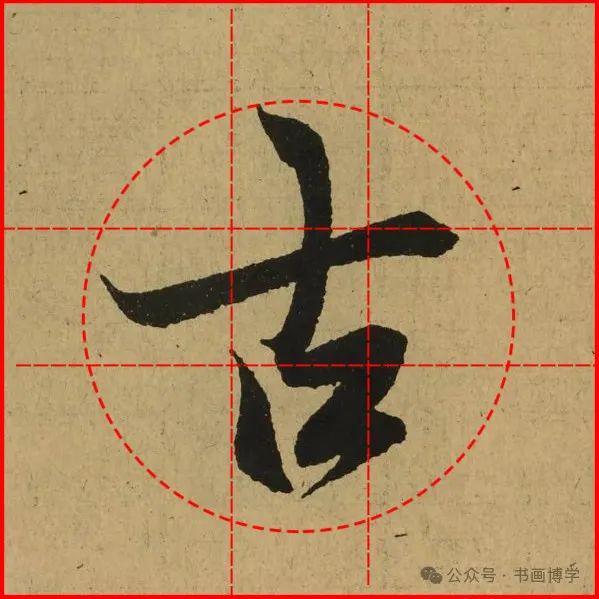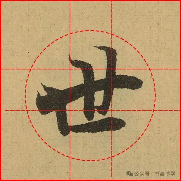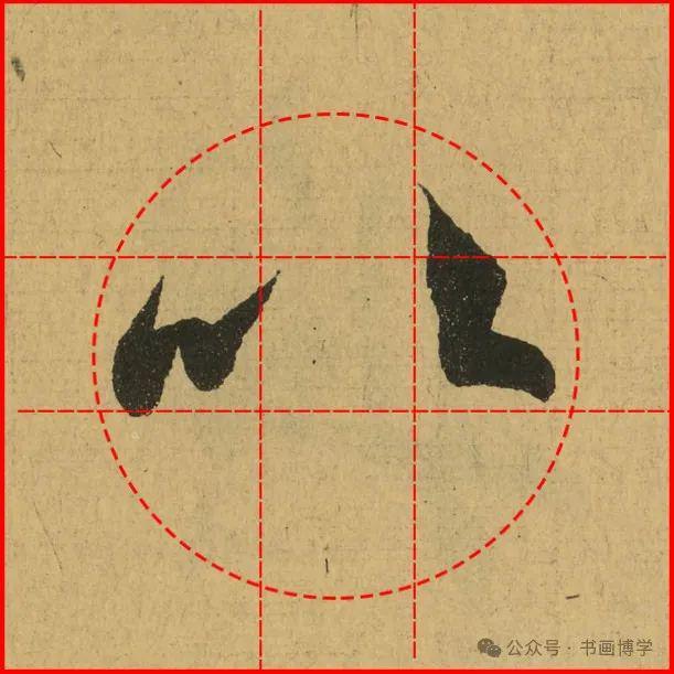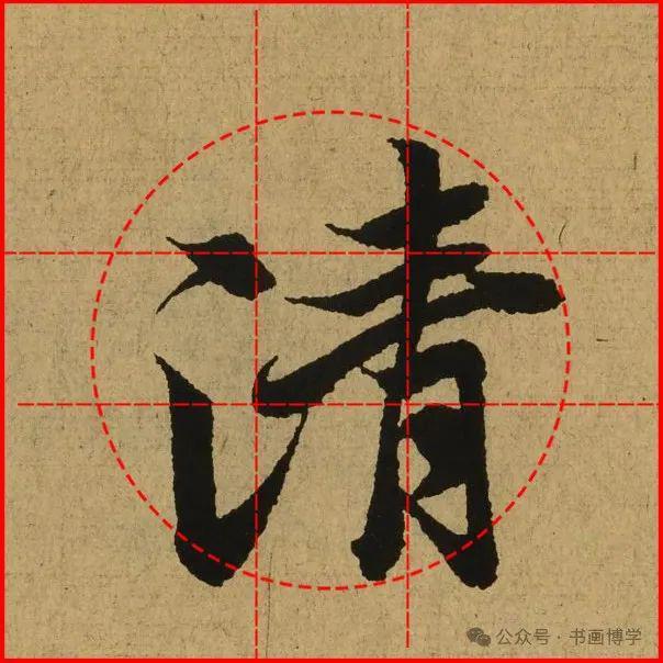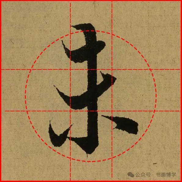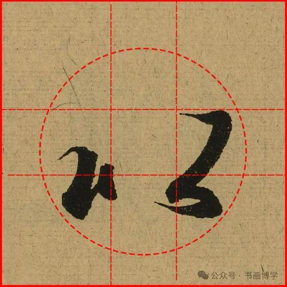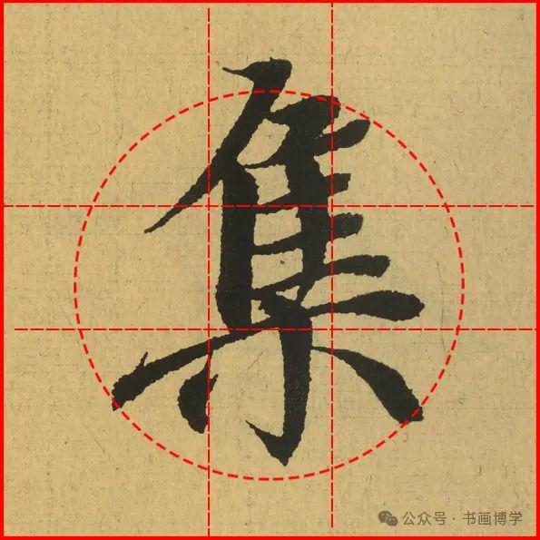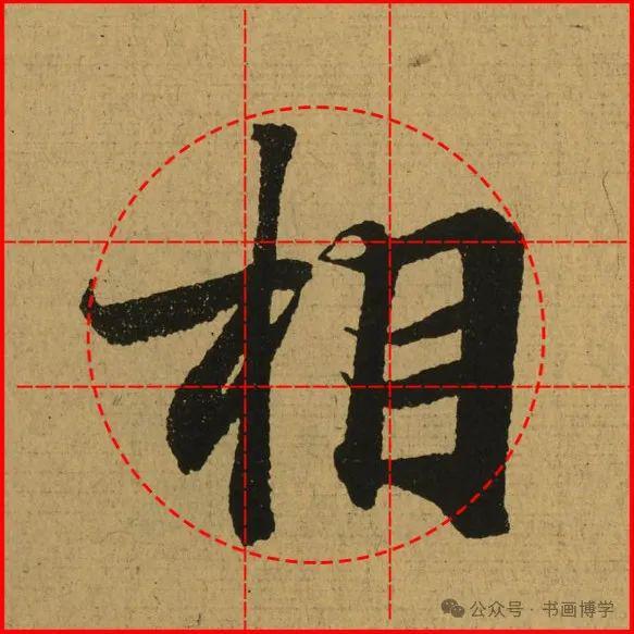 这是由启功先生发明的黄金律练字法,仔细观察会发现其中每个字的重心点在哪,相比于普通九宫格,中心会较为紧凑。然后下面的格子是在其基础上增加一个圆形虚线,便于初学者掌握字形大小而临习。