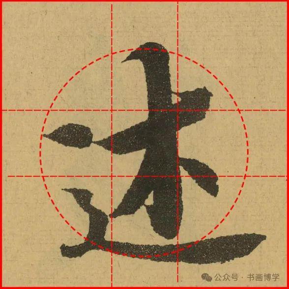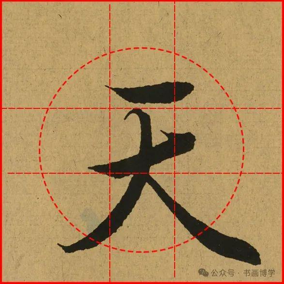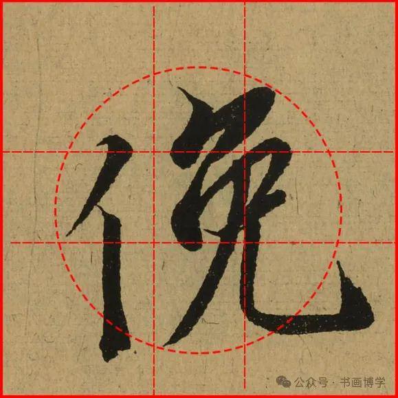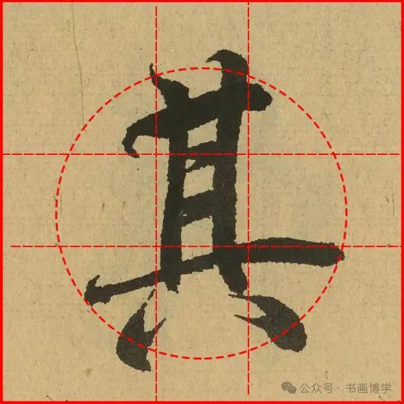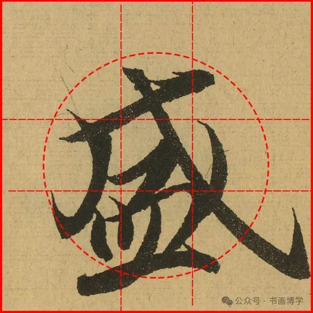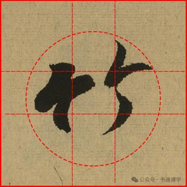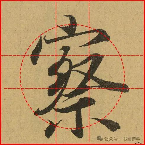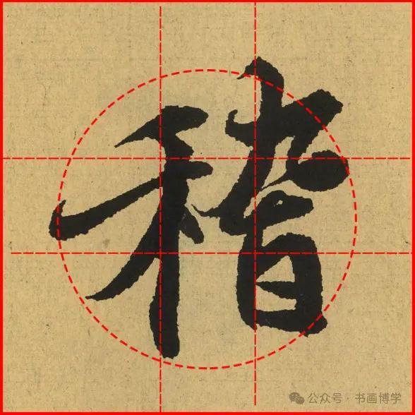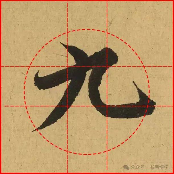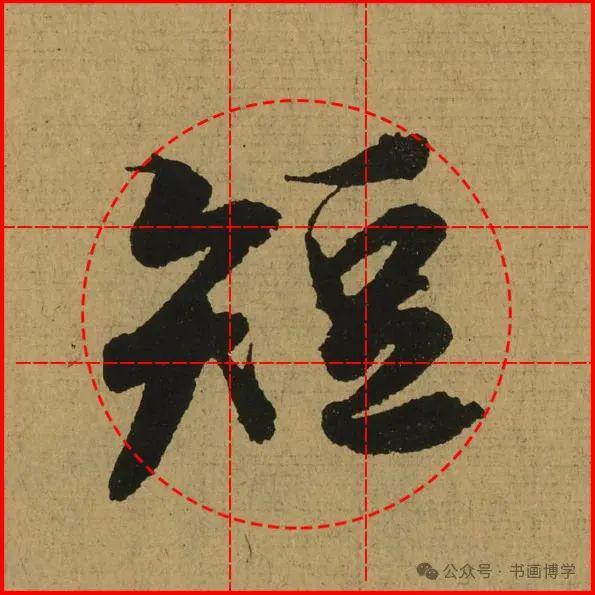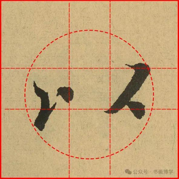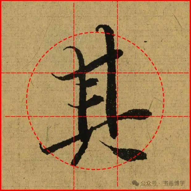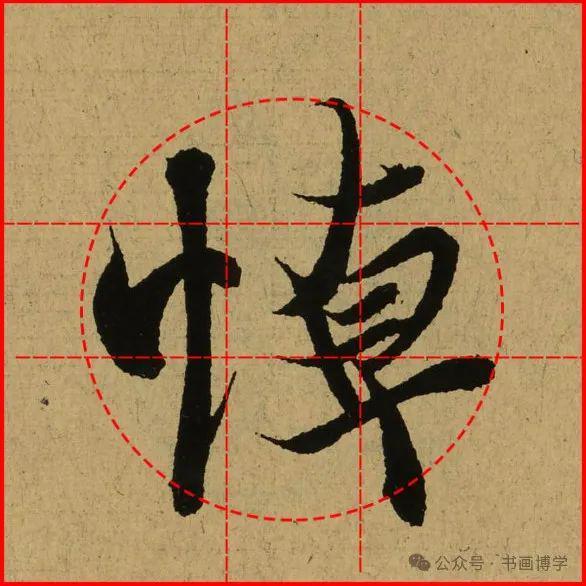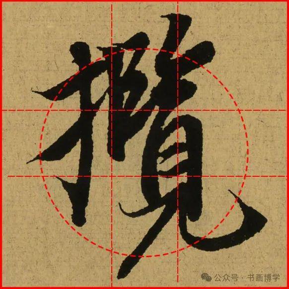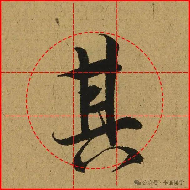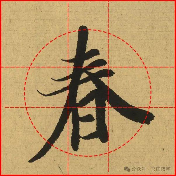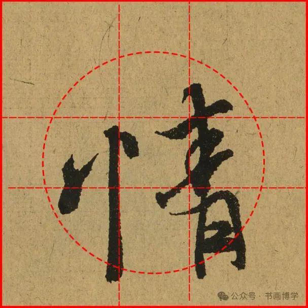 这是由启功先生发明的黄金律练字法,仔细观察会发现其中每个字的重心点在哪,相比于普通九宫格,中心会较为紧凑。然后下面的格子是在其基础上增加一个圆形虚线,便于初学者掌握字形大小而临习。