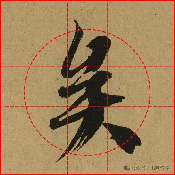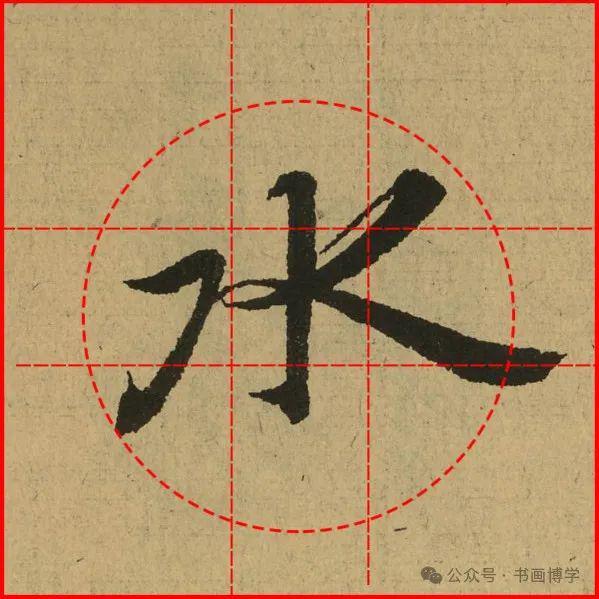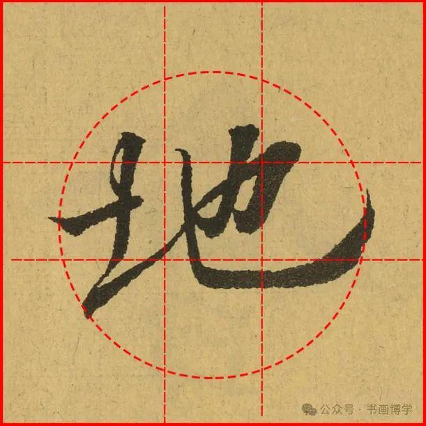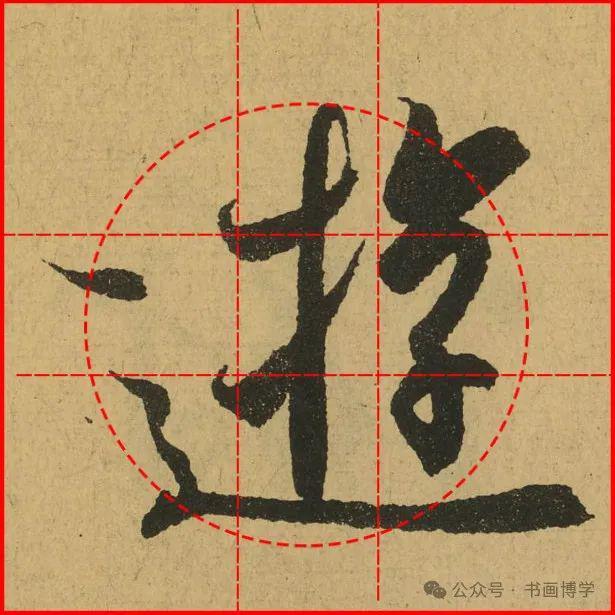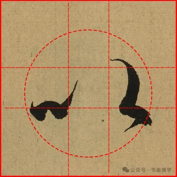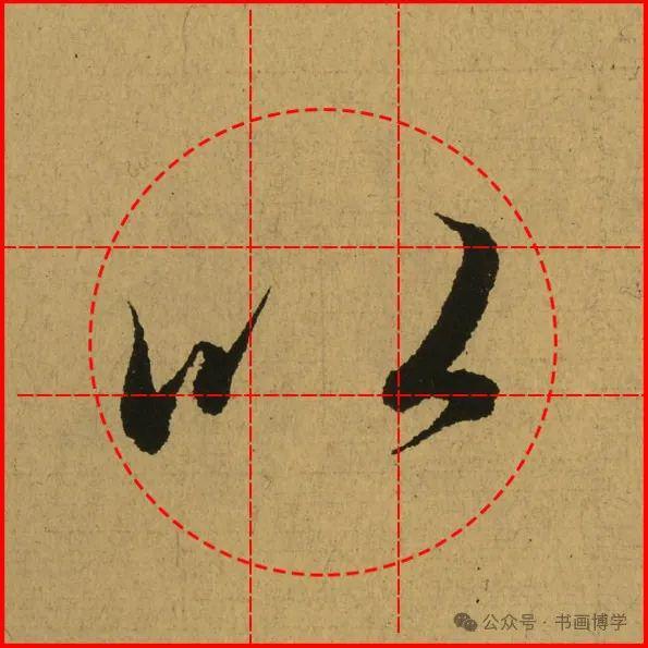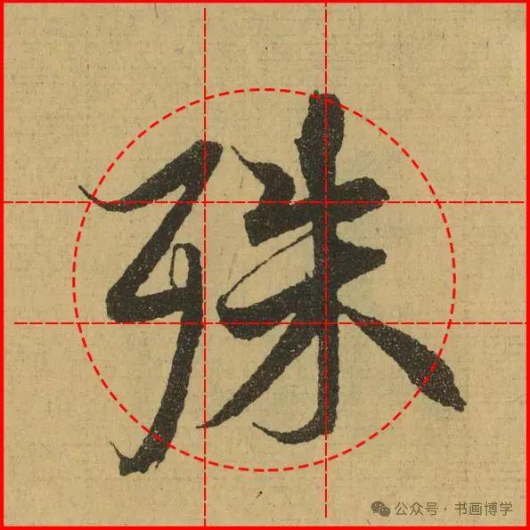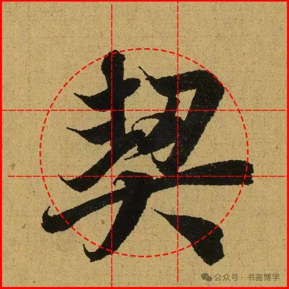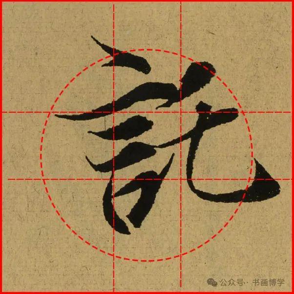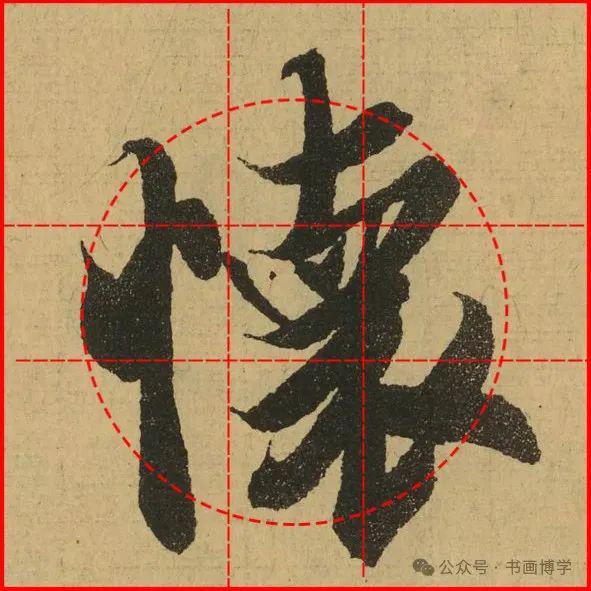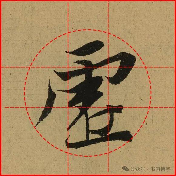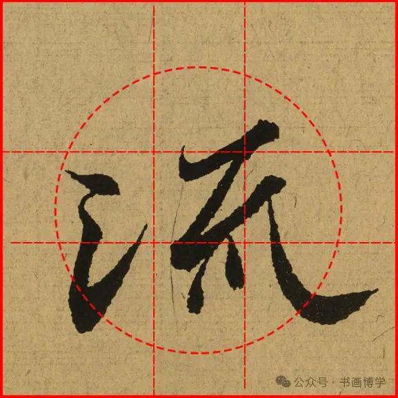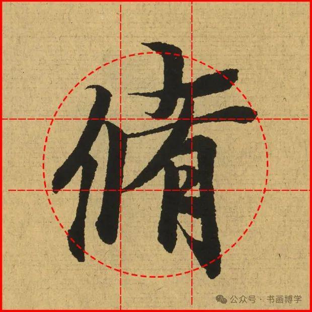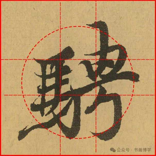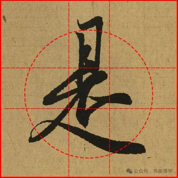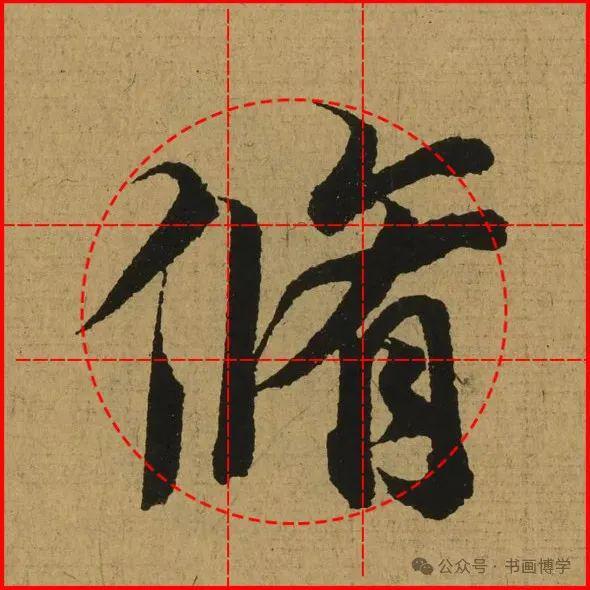 这是由启功先生发明的黄金律练字法,仔细观察会发现其中每个字的重心点在哪,相比于普通九宫格,中心会较为紧凑。然后下面的格子是在其基础上增加一个圆形虚线,便于初学者掌握字形大小而临习。